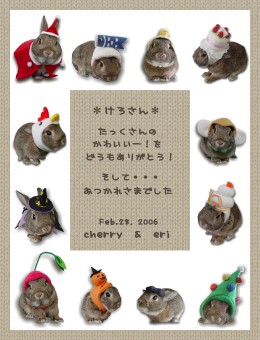 チェリー君とeriさんからもらったよありがとう♪ こんなにかぶってくれました。 |