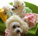 | ここは雲の上の天使の国。みんなを見守ってるよ〜 (左からウー君、ハニーちゃん、ティオ君) |