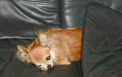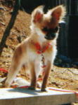 まだ赤ちゃんなので、毛が短くってスムースっぽい?うしろにあるピンポンダマを追いかけて遊ぶのが大好きでした。 名前を呼ぶと、こんなふうに固まってしまう所がかわいかったです。 |