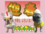 | どもども・・・・ウニちゃんファミリー勢ぞろいで新年のごあいさつ〜 かぶりもの上級者ですよぉぉみなさん参考にしてくださーい(byけろ) |