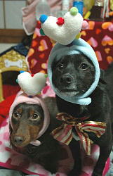 チェリー君とeriさんからもらったよありがとう♪ こんなにかぶってくれました。 |